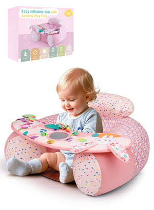 Baby Inflatable Seat with Cover for Babies 3-36 Months, Portable Baby Chair Sit Me Up Floor Seat with Detachable Activity Sensory Tray, Baby Seats for Sitting up, Pink