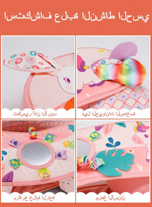 • DETACHABLE SENSORY TRAY: The activity tray is designed with colorful mirrors and teethers, built-in BB squeaker, crinkle and rattle, accompanied by cute elephants and foxes on both sides, which can promote the baby's sensory development and cognitive ability, and at the same time, it also enhances parent-child interaction