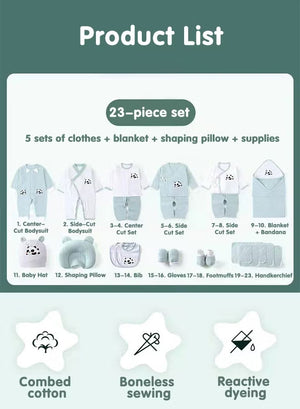 • 【23-Piece Layette Gift Set】The newborn layette gift set box includes 5 sets of clothes and other essential clothes and accessories, suitable for babies aged 0-12 months.