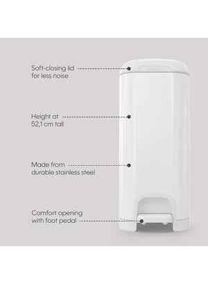 Select Odor Lock Stainless Steel Diaper Pail White | Hands-Free Step Pedal | Odor Control | Large Capacity Baby Nappy Trash Bin