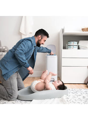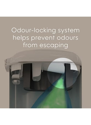 Say goodbye to unpleasant odors with the Diaper Genie Select Odor Lock Stainless Steel Pail. Designed for busy parents, this hands-free diaper pail features a durable stainless steel body, an odor-locking system, and a convenient step pedal for hygienic, touch-free disposal. With its modern design and large capacity, it fits perfectly into any nursery while keeping it fresh and clean. Available in White, Grey, and Green to match your nursery decor.