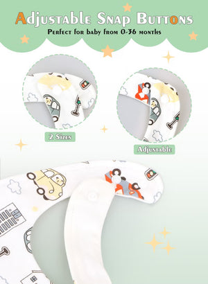 • 【Adjustable Snaps】The dribble bibs comes with 2 plastic snaps, adjustable to different baby necks size, perfect to wear for babies aged 0 to 36 months.