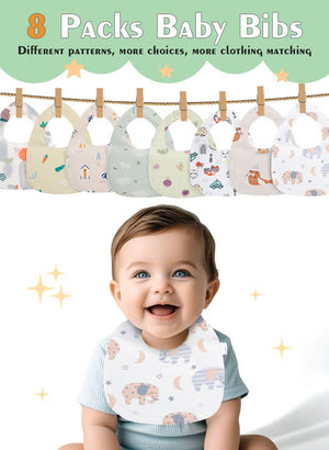 • 【8 Bibs in a Pack】There are 8 different designs of baby bandana bibs, not only will it help your drooling/teething baby stay tidy, but it's also a stylish decorations for your baby's daily look.