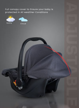 3 In 1 Multi Purpose Baby Carry Cot N Car Seat With Canopy, Adjustable Handle, 3 Point Safety Harness Baby Carry Cot For Newborn Baby 0 To 15 Months 10 Kg Black