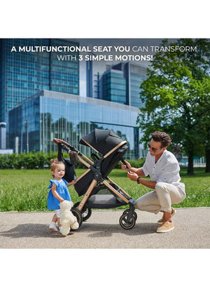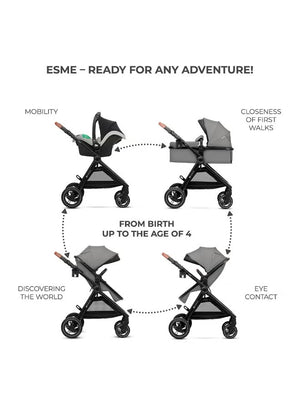 Take your daily strolls in style with the Kinderkraft ESME — a multifunctional 3-in-1 pushchair combining elegance, functionality, and comfort. The spacious carrycot with ventilation can easily convert into a stroller in just three simple steps, saving you time and space. Perfect for everyday walks or longer holiday trips, ESME’s lightweight frame, large puncture-resistant wheels, and included MINK PRO i-Size car seat and adapters make your adventures hassle-free. The set includes a rain cover, leg warmer, cup holder, and a smart parent bag — all included at no extra cost. From smooth pavements to forest paths, ESME is your reliable partner for strolls with your little one.