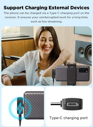 • Type-C Wireless Lapel Microphone:BY-V20 mini wireless lavalier microphone kit has 1 USB Type-C interface receiver and 2 transmitters. The small wireless lapel mic is compatible with Android Smartphone, tablet, and other USB-C devices.