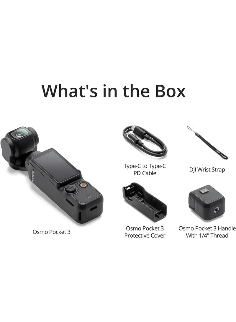 • Includes Osmo Pocket 3, a protective cover, wrist strap, a handle with 1/4" thread, and more. A great choice for first-time vloggers