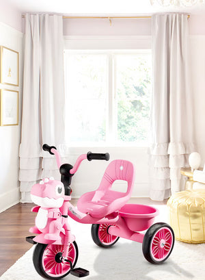 Tricycle for Kids, Baby Cycle with Light and Music, Kids Tricycle with Back Storage Basket & 3 Wheels, Kids Cycle Bike For 2 to 5 Years Boys Girls Pink