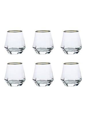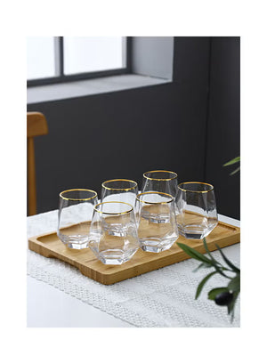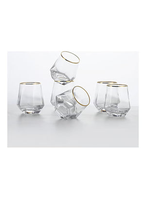6-Piece Hexagonal Low Glass Water Cup Clear/Gold 9.2x9.3x6.6cm