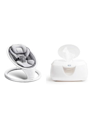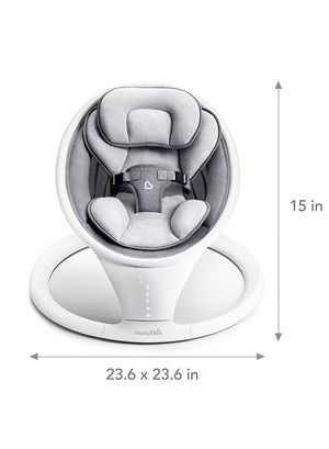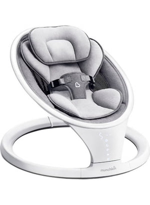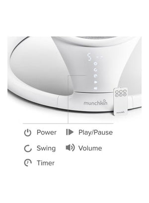 Some babies only soothe when rocked or held which is downright exhausting for sleep-deprived mums and dads. When you need a second or third set of arms to get through the day, munchkin’s bluetooth enabled swing is here for you. A study in sleek functionality and smart design, this baby swing has a compact silhouette that’s easy to put together and break down again. It recreates the calming side-to-side swaying motion most babies love, making it the next best thing to being cradled in your arms. The included remote lets you control everything from the motion and timer to the selection of calming sounds. Soothe your mini impresario with classical music from bach, beethoven, mozart and chopin, or one of eight ambient sounds. Since the swing is bluetooth compatible, you can connect to your phone and stream baby’s favourite tunes, too. At under 10 pounds, this lightweight baby rocker conveniently disassembles into two parts, so you can store it away in tight spots even under the bed. And since it's so easy to pack down, it's also perfect for transporting to grandma’s house, on vacation, or simply room to room at home. Time to reclaim your arms and your sanity.The Munchkin Bluetooth Enabled Lightweight Baby Swing combines modern convenience with soothing functionality to create a perfect calming space for your baby. Designed with advanced features and a sleek, practical build, this baby swing is ideal for busy parents seeking both comfort and ease of use.The swing’s lightweight design makes it easy to move around the house or transport, ensuring that your baby can enjoy their swing wherever you go.Equipped with multiple recline settings, the swing offers various positions to support your baby’s comfort and developmental needs, whether they’re napping, playing, or just relaxing.The gentle, rhythmic swinging motion mimics the comforting sway of being held, helping to soothe and calm your baby, making it easier for them to drift off to sleep.