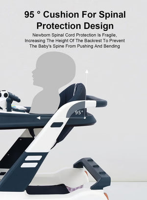 • Comfortable Walker: This multi-functional baby walker is suitable for little baby. The 95 degree cushion for spinal protection design increasing the height of the backrest to prevent the baby's spine from pushing and bending