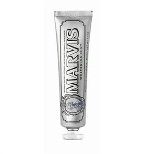 This specially formulated whitening toothpaste contains a cocktail of ingredients that gently but effectively work to reduce discoloration of the teeth. The flavor is a sharp taste of cool mint that gives a long lasting pleasurable taste sensation. The formula helps prevent tooth decay, fights tartar and plaque and keeps breath fresh all day long. And not only does MARVIS Whitening Mint Toothpaste clean and protect teeth, and taste terrific but it even looks great in its luxuriously styled tube.