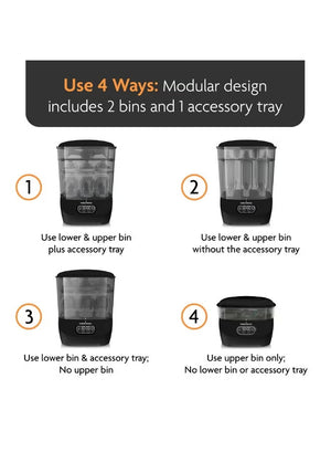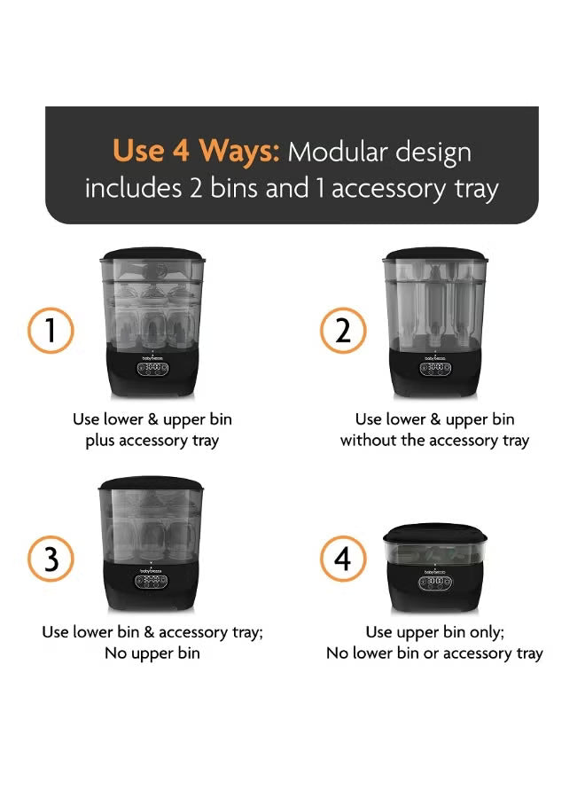 • •MOST MODULAR 3-LAYER DESIGN: Use 4 different ways to meet your needs – Only Sterilizer Dryer with large lower bin, shorter upper bin and unique accessory tray