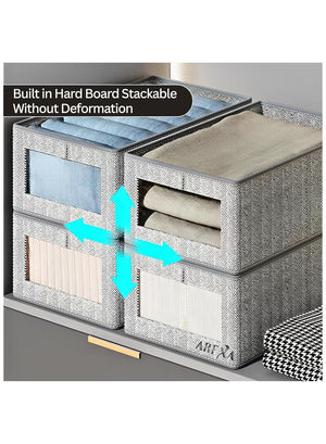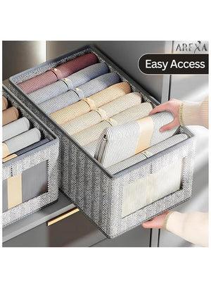 Keep your wardrobe, shelves, and drawers perfectly organized with the AREXA 4-Pack Wardrobe Clothes Organizer Storage Boxes. Designed with transparent windows for quick item identification, these large-capacity bins are perfect for neatly storing jeans, shirts, sweaters, baby clothes, toys, books, and more.
