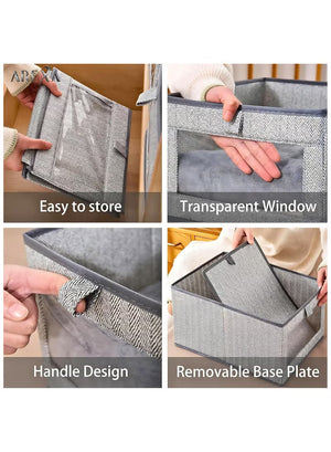 • [4-Pack Large Storage Boxes] Includes four foldable linen wardrobe organizers with transparent windows for easy viewing of stored items.