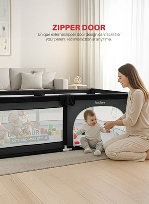 • 🔒 Secure Design with Zipper Door: This kids playard features a safety zipper door that allows easy entry and exit while keeping your baby safe inside. The smart design ensures parents can easily interact with their child, while the secure closure makes it an excellent option for a playpen fence or kids playpen that supports both safety and accessibility.